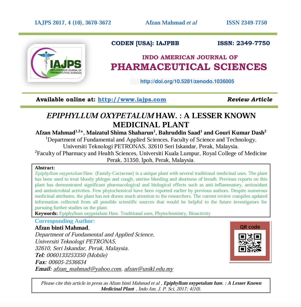 (Epiphyllum oxypetalum (DC.) Haw.) – An Update Review